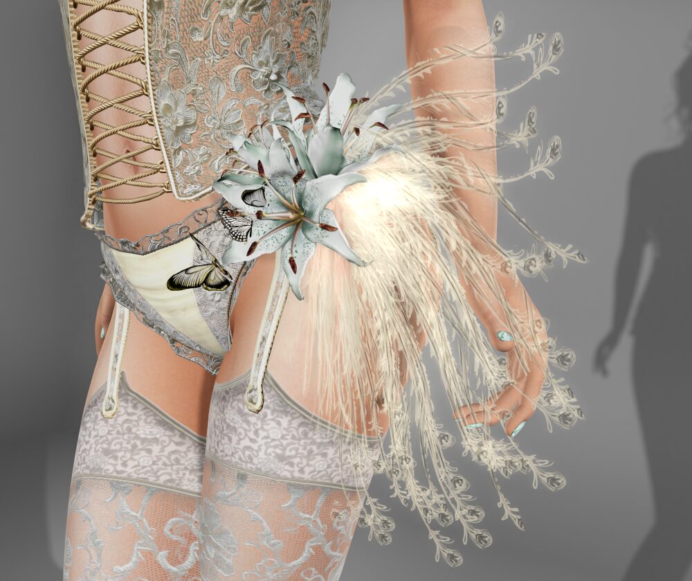 It also includes a HUD that allows you to select from seven different metals for the buckles, and to show or hide the bows and garter straps.
