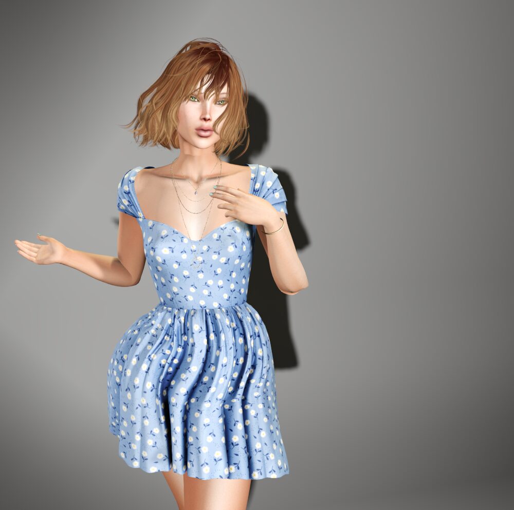 The dress is sized to fit Lara, Lara Petite, Lara X, Lara X Petite, Bombshell, GenX Classic, GenX Curvy, Kupra, Legacy, Legacy Perky, Reborn, Waifu, and Star. The pantyhose are BoM.