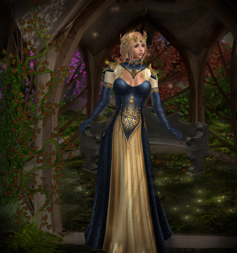 The only thing I changed was the applier; while the included one (which basically covers the shoulders and upper chest) is not bad, Arwen’s actually has what I think is a better one for this color combination, which is from the Aethereal gowns.