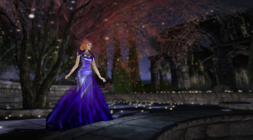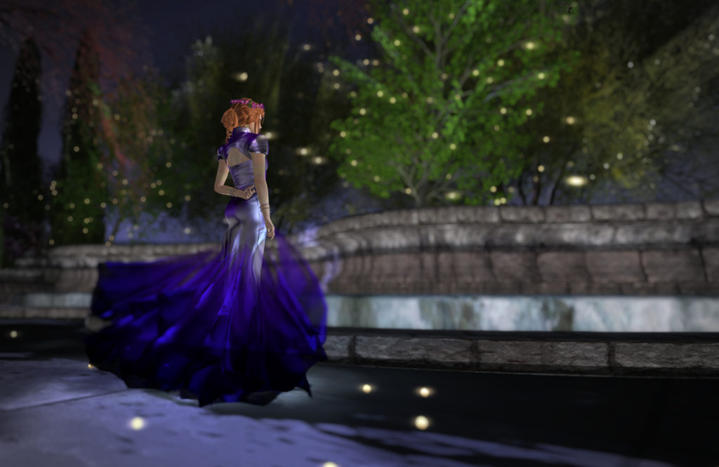 You’ll also note the wonderful halo from *SR* design. The haloes come in seven different colours, and can be modified in colour. There’s a beautiful shimmering kind of effect, and a slow rotation of the whole thing. As i write this up, I’m wearing it with a purple fae that I wear while I dance on the Fairchylde. It mounts on the avatar centre, so it stays in place behind you as you dance, which is kinda neat. I’ll have to take another pic and show that off to you later!