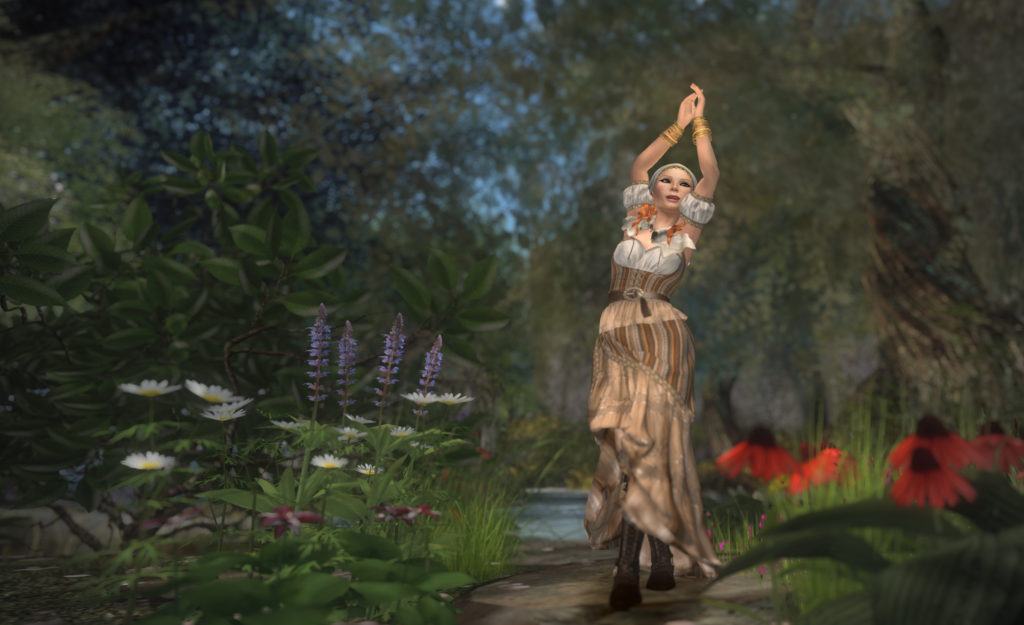 We’re just over half-way through June, and the June edition of We Love Role Play is going strong! Bee and Solas at Silvan Moon Designs bring you Esmeralda. It has a wonderful care-free feel to it. While it’s a longer mesh, it’s flared up about calf-length, so it doesn’t pose the kind of problems that you often see in movement for a longer mesh dress. Esmeralda comes in six lovely colours, and is sized for Maitreya only.