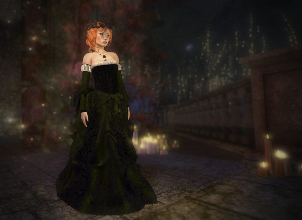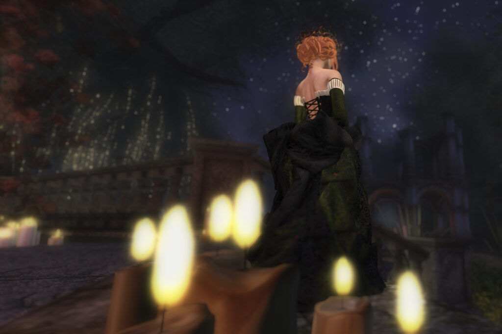 Let’s close on a happy — we’re on location outside of Silvan Moon Designs. My favourite sim designer, Gidgy, decorated the sim beyond the store for Bee and Solace. Queensgarden lives on, in our hearts and all over the Grid!